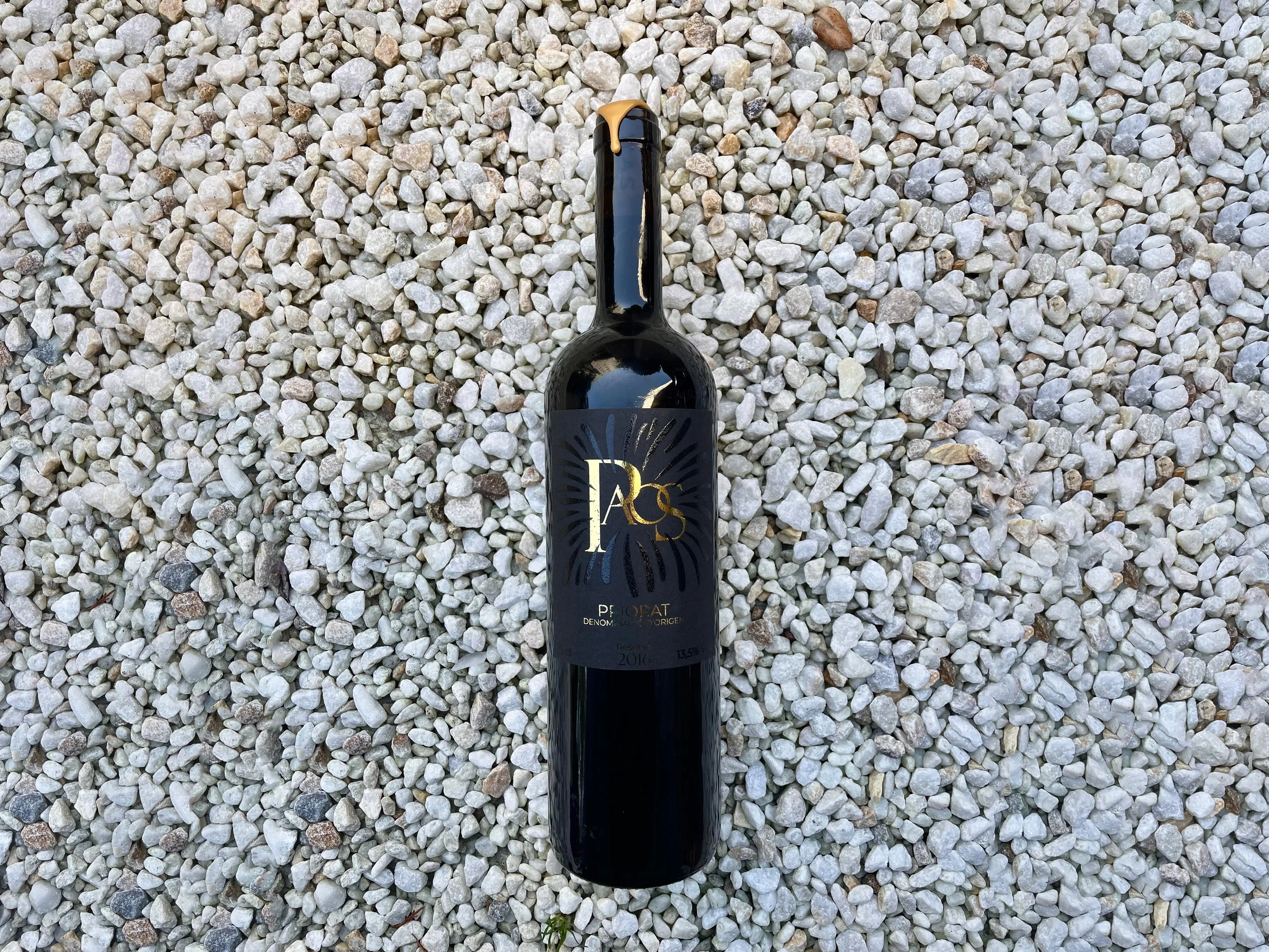 To design the label for a Catalan wine, I chose the Priorat region. My wine is crafted from a blend of two grape varieties: Garnacha Negra and Cariñena. I wanted to represent this combination as an explosion of flavors, inspired by Ratatouille, a film that beautifully captures the passion for gastronomy—particularly the scene where Remy pairs cheese and strawberries, creating a spectacular explosion akin to fireworks. I aimed for an elegant yet playful aesthetic, using black and gold accents with touches of glossy hot stamping and embossed UV details. The name Paos comes from the combination of the concepts of PAssion & chaOS.
